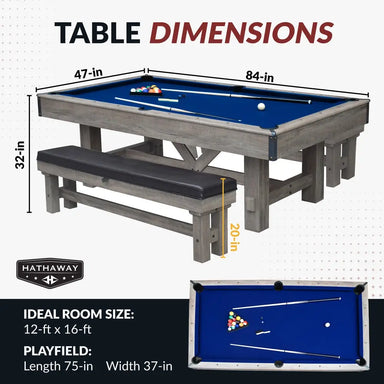 Hathaway Newport 7-ft Pool Table Combo – Dining & Benches